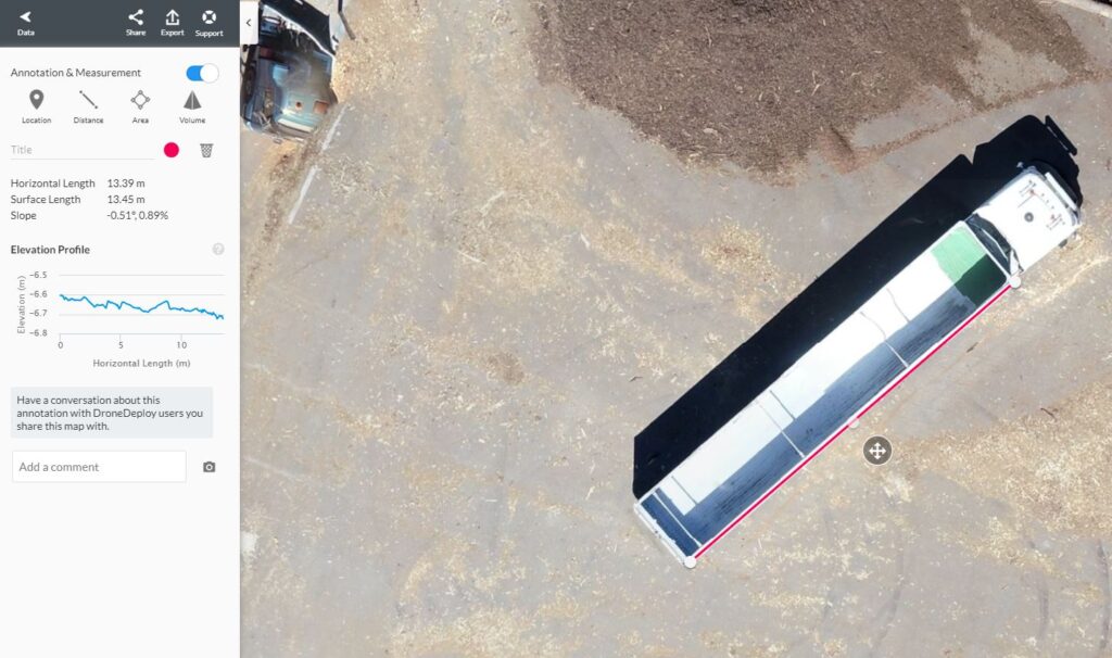 Nadien worden alle foto’s in fotogrammetriesoftware verwerkt. Dit resulteert in een 2D en 3D map waar men alle aanwezige volumes, afstanden en oppervlakten kan gaan meten.